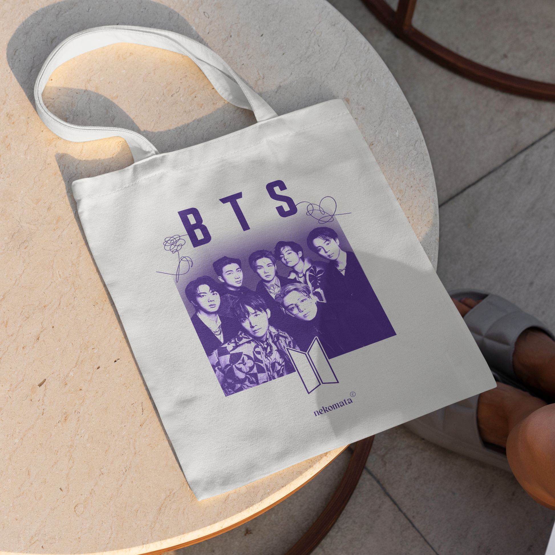 Discover our 🎒 BTS Tote Bag, the perfect accessory to accompany you for this back-to-school season. With its unique design created by me, this bag combines style, aesthetics, and environmental consciousness ♻️. Made from sustainable materials, it represents your love for BTS while being mindful of the planet 🌍. Practical and versatile, this Tote Bag will be your ideal companion wherever you go 💜.